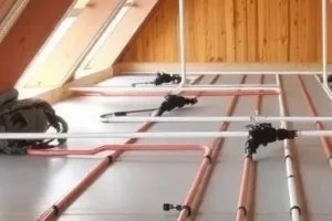 обрешетки с шагом по ширине утеплительных плит; самого утеплителя, размещаемого в нишах обрешетки; специальной отражающей тепло фольги, при монтаже которой особое внимание уделяется изоляции стыков, так как должны перекрываться внахлест и дополнительно проклеиваться. (Теплоизоляция пола должна укладываться внахлест на стены где-то на 20 см; при этом элементы стенного «пирога» располагаются поверх нее).