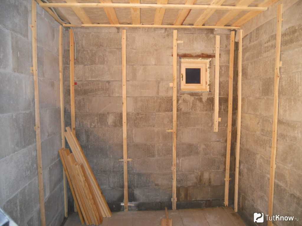 Перед установкой вагонки на поверхности, её следует обработать антисептиком с обеих сторон. На фольгу набиваются брусья с сечением 25×25 см. Это проделывается для образования зазора между фольгой и вагонкой, так называемой воздушной подушки.