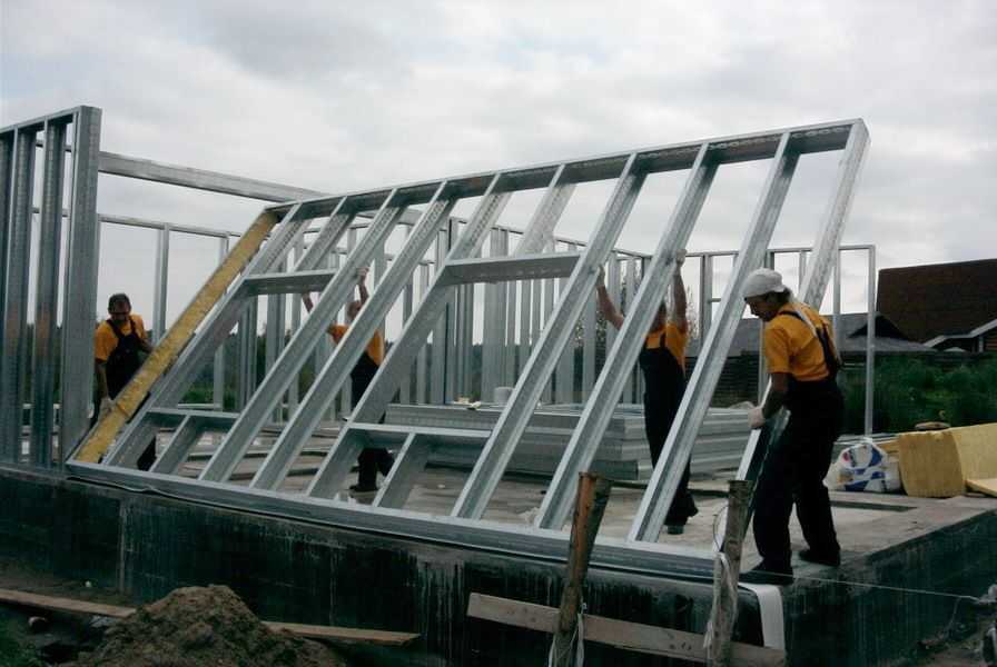 Видео демонстрирует процесс постройки дома на металлокаркасе: