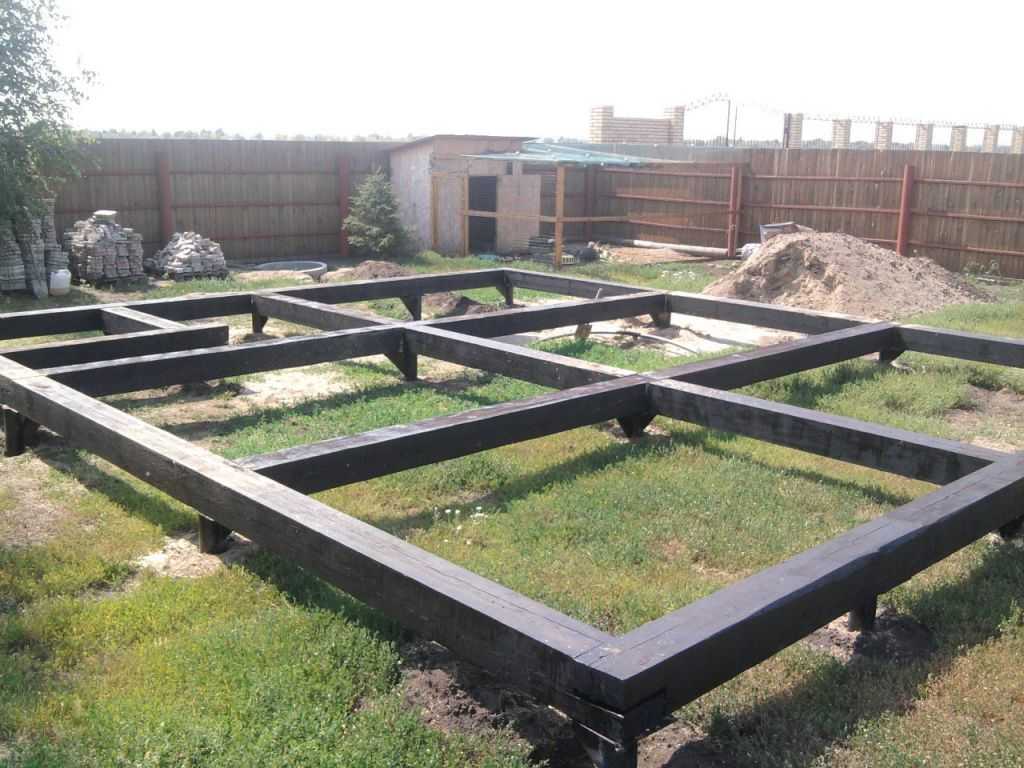 При использовании столбчатого фундамента рама изготавливается из жесткосоединенных между собой балок, установленных на опоры.