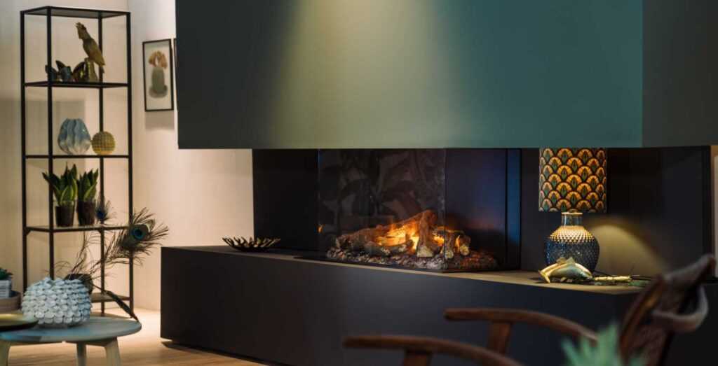 Альтернатива электрокамину — биокамин. Хотя он сжигает топливо, он не требует дымохода или даже дополнительной вентиляции.