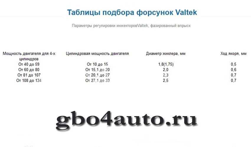 Смотреть видео: Таблица жиклеров для форсунок Valtek