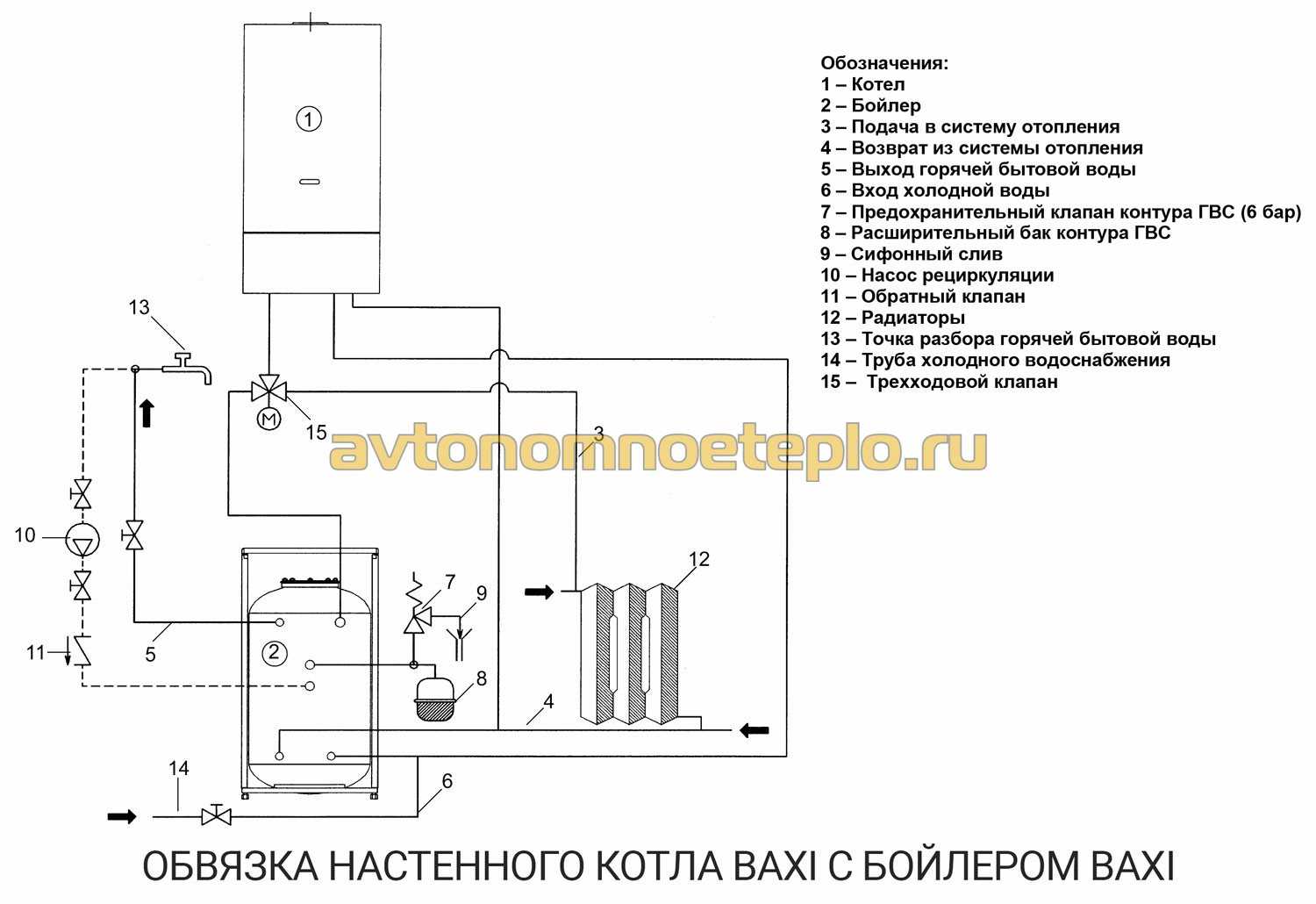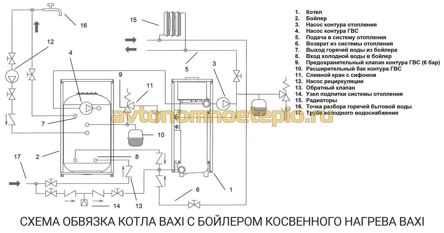 - Циркуляционного насоса, с помощью которого осуществляется принудительная циркуляция теплоносителя по отопительному контуру и трубопроводам ГВС.