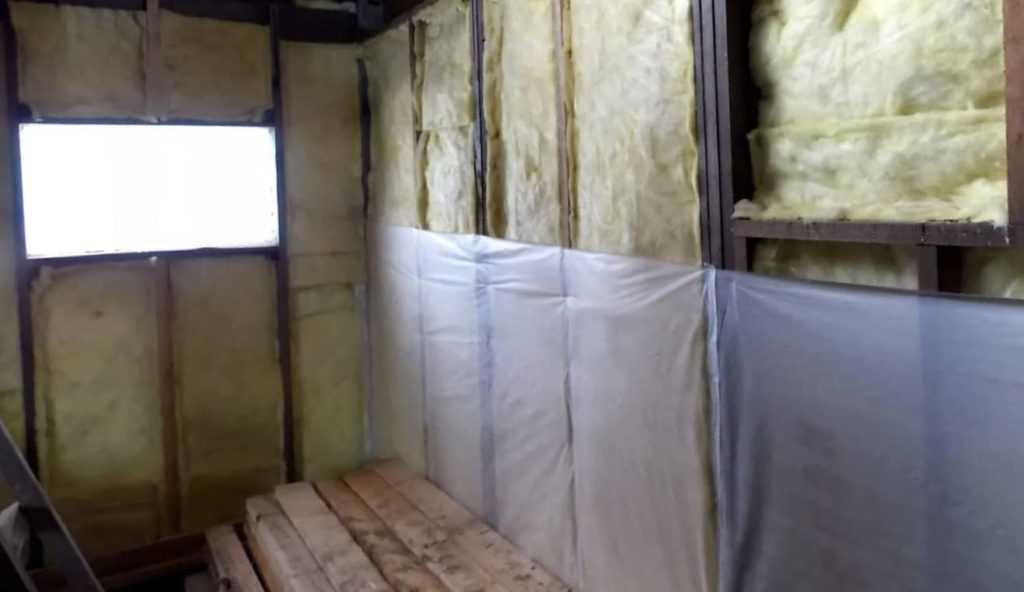 - При монтаже минеральной ваты, перед укладкой, на стенах фиксируют пароизоляционный материал, для защиты утеплителя.