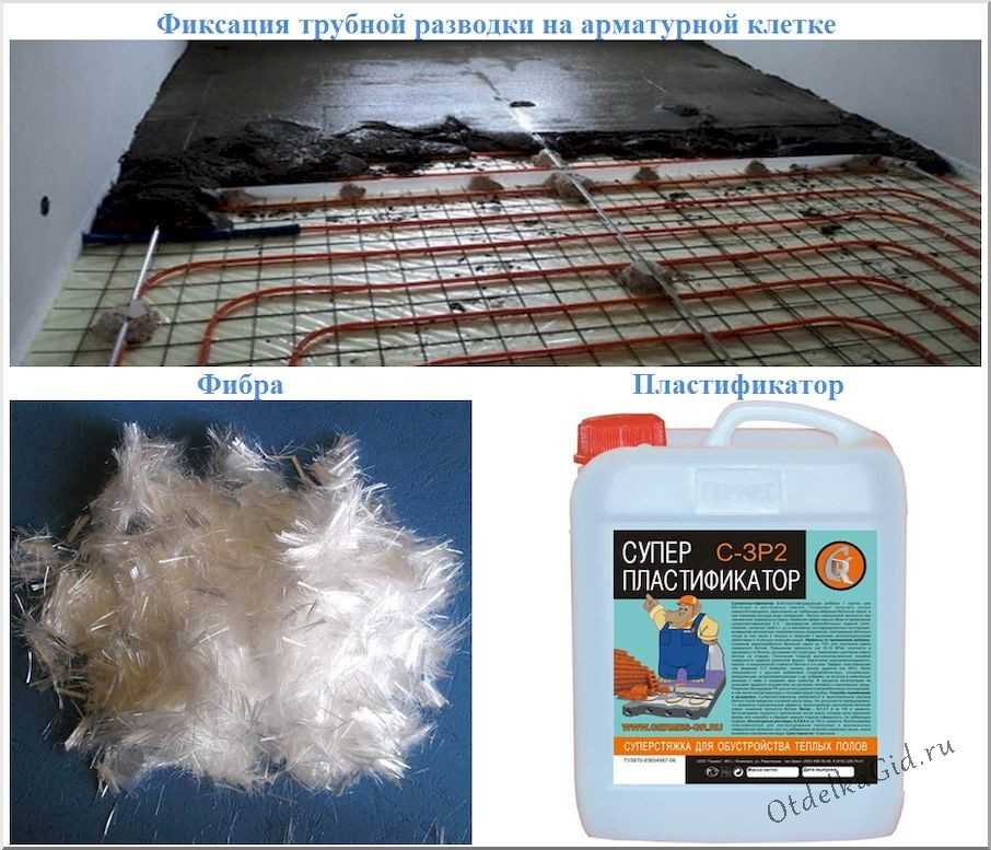 Чтобы избежать образования трещин от перепадов температуры, помимо арматурной сетки, в стяжку добавляют стекловолоконную фибру и пластификатор