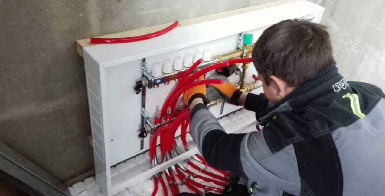 - После оформления контуров концы труб присоединяют к распределительному коллектору, монтируют сервоприводы, регулирующие работу теплового потока при помощи комнатного термостата.
