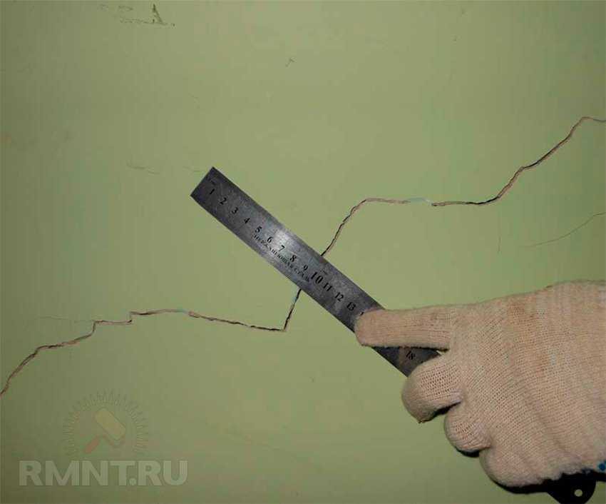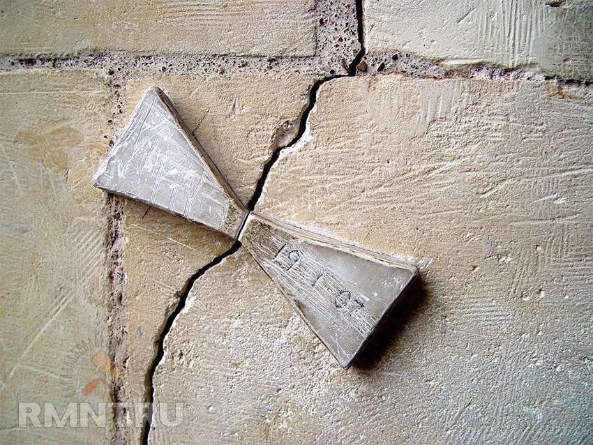 - Если метка треснула или отвалилась, значит, трещина продолжает расширяться. По зазору в метке можно судить о скорости расхождения.