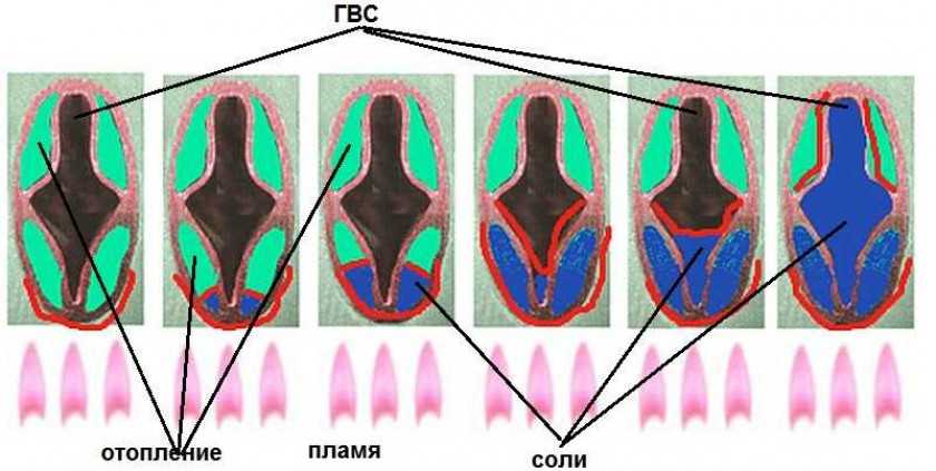 Между собой они не смешиваются, нагрев производится путем передачи некоторого количества тепла от горячего теплоносителя на ту часть потока, которая в данный момент проходит внутри змеевика.
