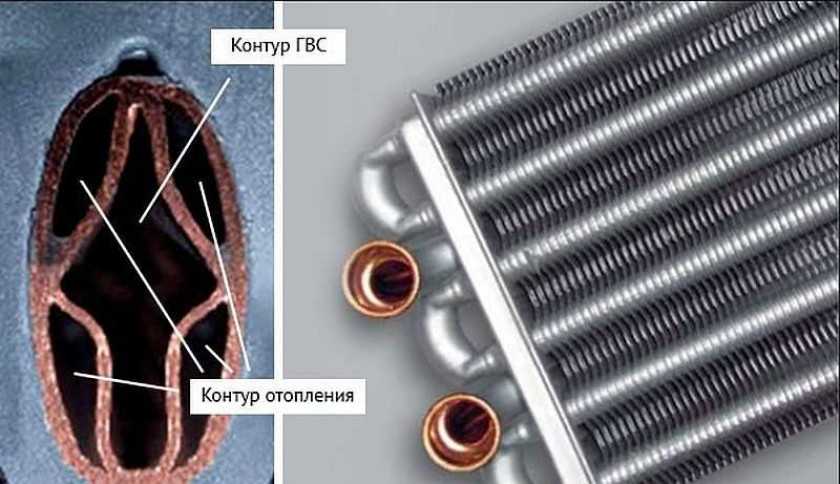 Теплообменник — это тот самый механизм, с помощью которого идет нагревание водяной отопительной системы. Несмотря на то, что тепло излучается именно горелкой, принцип действия направлен на сохранение и отдачу тепла во внешний ресурс. Грубо говоря, это механизма нагревания и сохранения тепла, высвобождаемого горением.