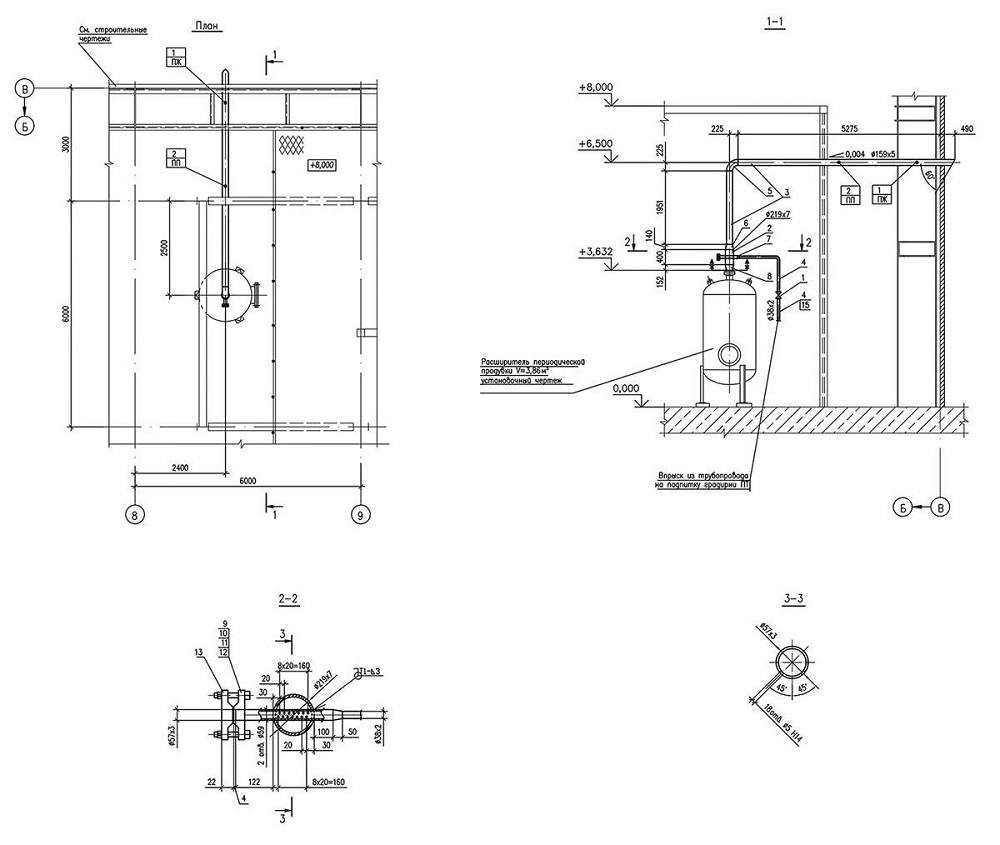 Чертеж паропровода из сепаратора непрерывной продувки к деаэратору