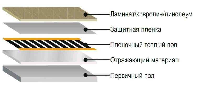 Последовательность элементов при монтаже пленочного пола