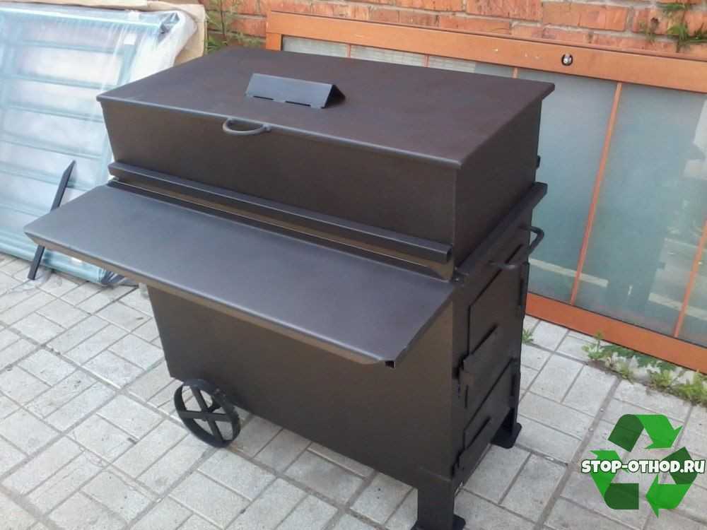 Фабричные печи имеют небольшие размеры и маленький вес. Их запросто можно расположить в грузовом отсеке машины или переставлять на садовом участке. С помощью верхней крышки огонь защищается от осадков.