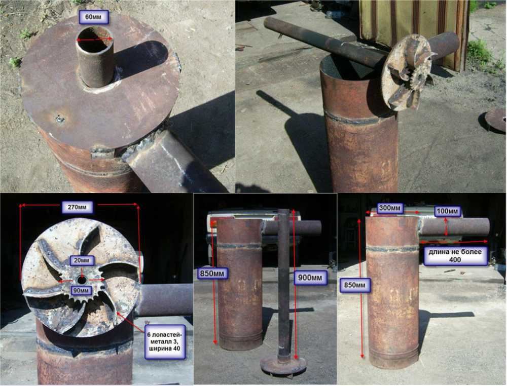 С обратной стороны плоского поршня привариваются четыре лопасти, которые не должны выступать за пределы воздухораспределителя. Благодаря им между металлическим блином и дровами будет находиться воздушный зазор, необходимый для горения топлива.