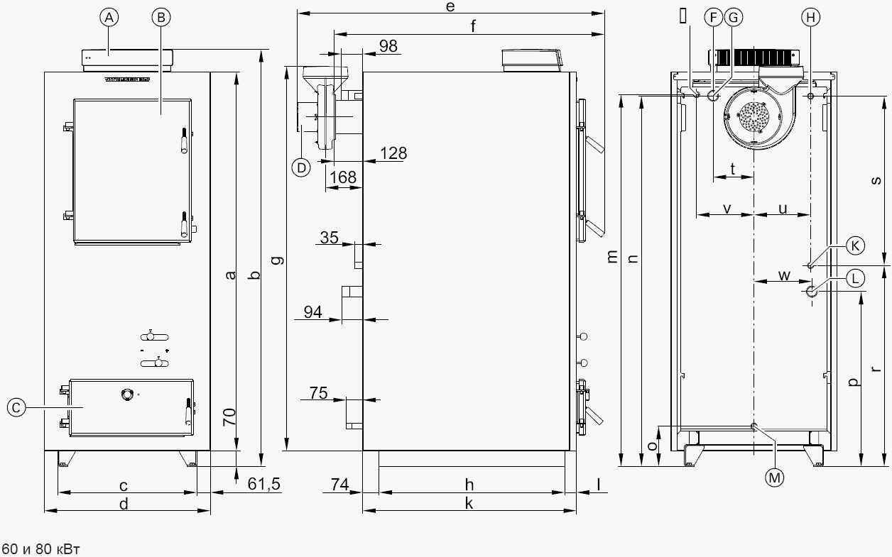 На инженерных чертежах твердотопливные котлы своими руками изображают с месторасположением основных элементов: