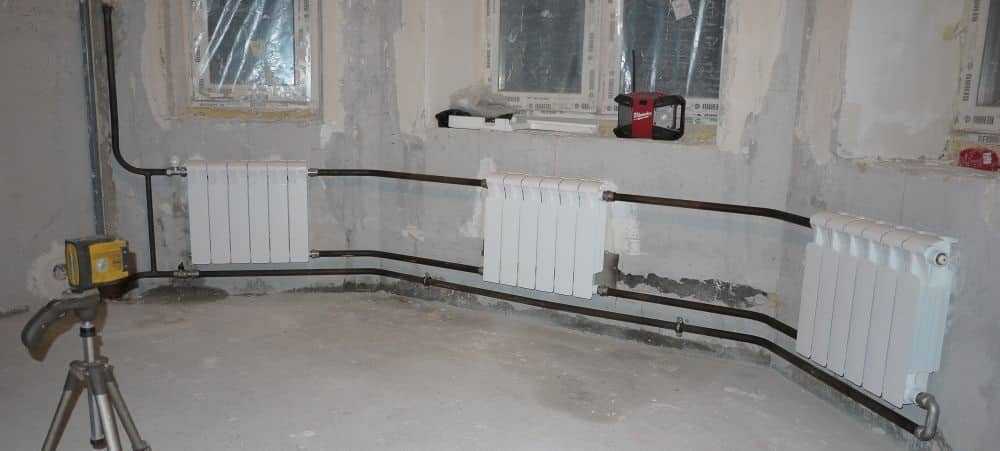 Подача нагретой и отвод охлажденной воды в системе происходит по разным магистралям. Каждый радиатор подключен к обеим трубам. В такой системе температура жидкости на входе каждого радиатора практически одинакова, она незначительно понижается за счет теплопотерь в трубах.