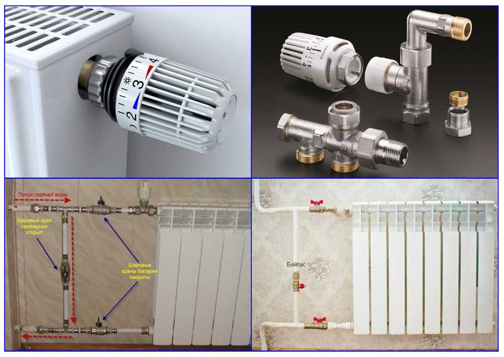 Терморегуляторы. Управляют потоком теплоносителя, поступающего в радиаторы в зависимости от положения ручки на шкале настройки. При помощи терморегуляторов выставляют одинаковую или заданную температуру на всех радиаторах в доме или квартире. Некоторые приборы способны полностью перекрывать поток рабочей среды, и таким образом выполняют функции запорного шарового крана.