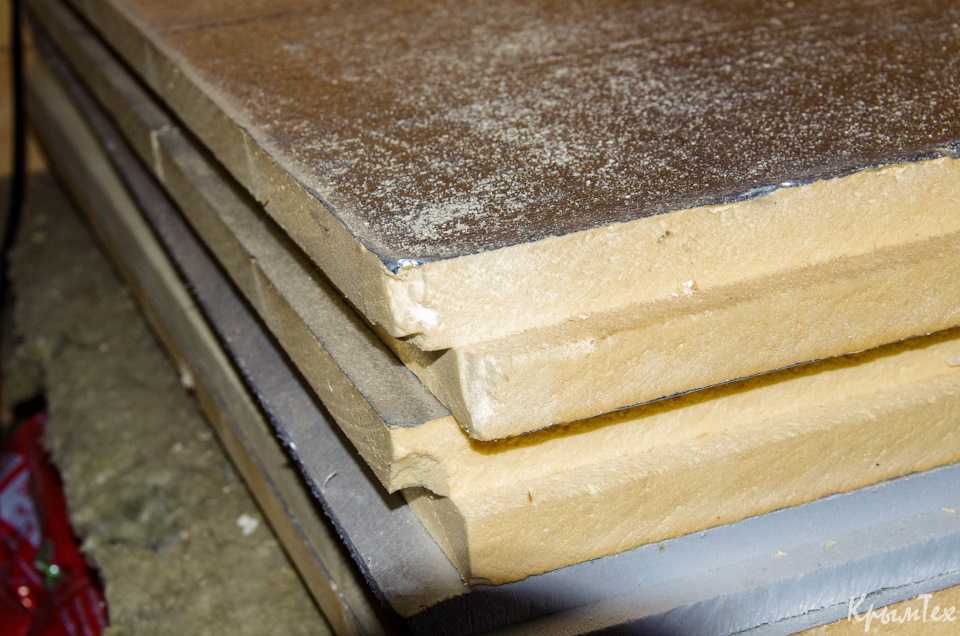 А на второй слой, выбрал какую то модную и дорогую PIR плиту толщиной 50 мм. Эта плита отличается очень низкой теплопроводностью, негорючая, выдерживает высокие температуры, а так же имеет двухстороннее фольгированние.