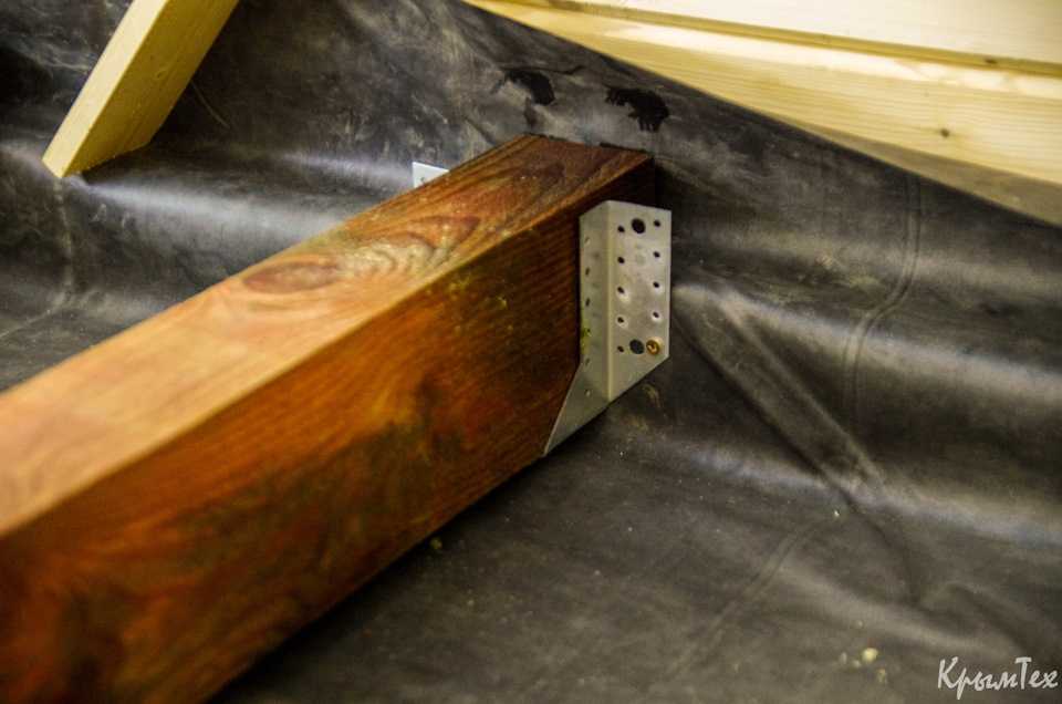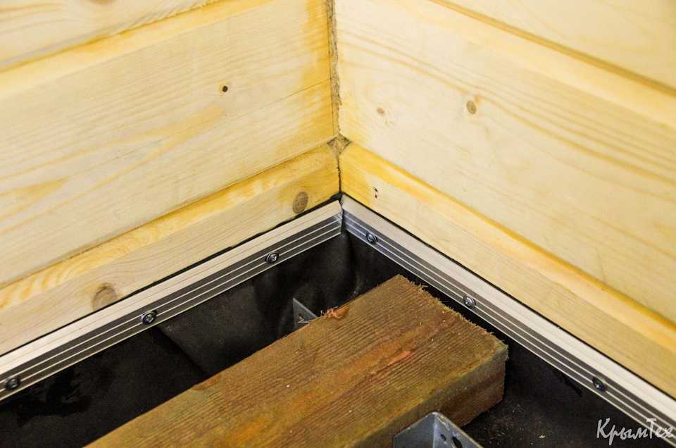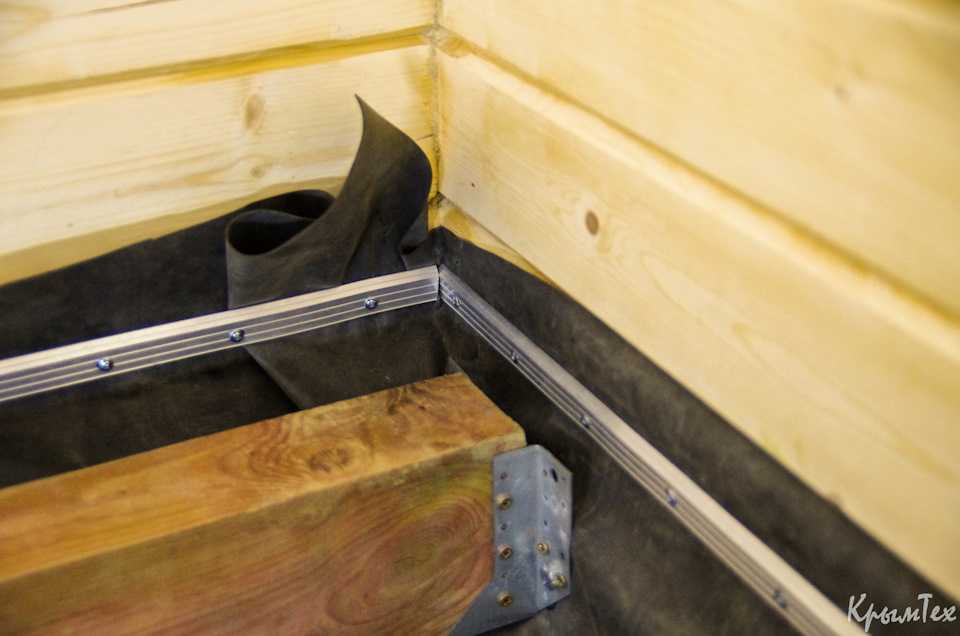 Мембрану к стене крепим на краевую кровельную планку из алюминия, есть прямые и есть угловые, разницы какую использовать особо нет, все от потребностей. Я взял угловую, так как хотел завести мембрану в шов бруса, но в итоге закрепил все по стене и можно было использовать прямую планку.