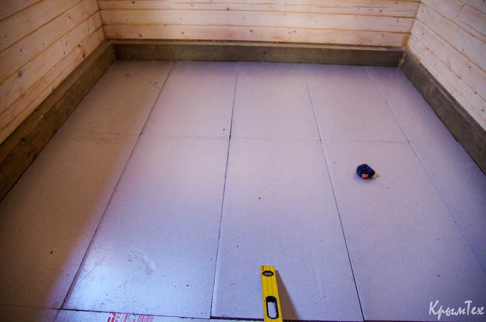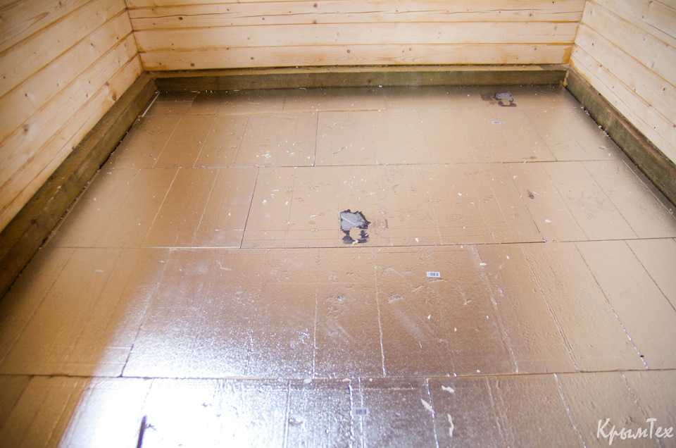 Несмотря на то, что именно пенопласт является не слишком подходящим материалом для утепления полов, его часто используют. Хотя его близкий родственник — экструдированный пенополистирол — подходит для этой цели гораздо больше. Преимущество пенопластов — их несмачиваемость водой. Это избавляет от необходимости изолировать их слой гидробарьером. В остальном — те же способы применения в утеплении полов, что были описаны выше.