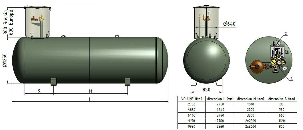 Рассчитаем, как правильно установить газгольдер на примере VPS. Диаметр бочки всегда 1.25 м.