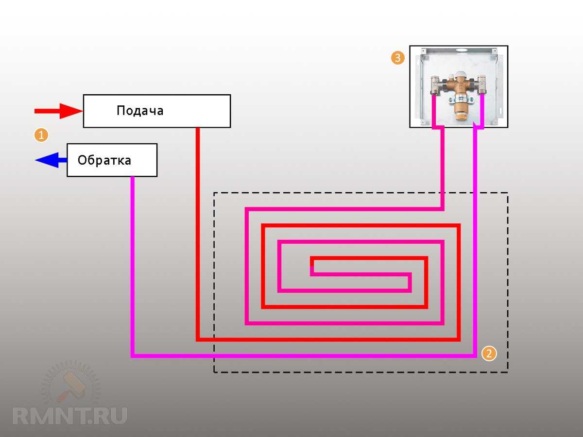 Схема смесительной группы для теплого водяного пола на трехходовом клапане