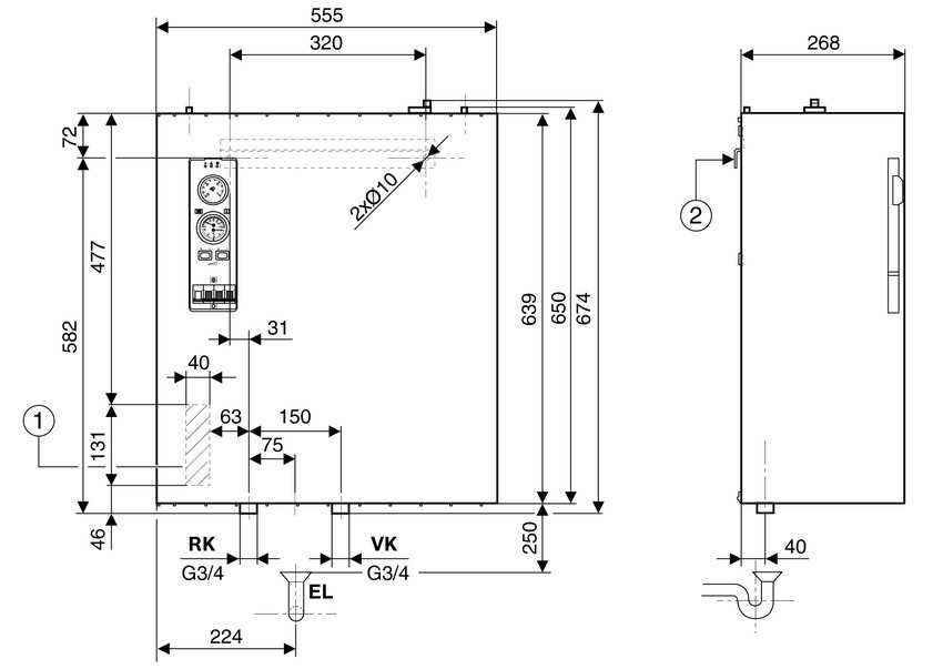 Монтажные размеры электрического котла Buderus Tronic 5000 Н
