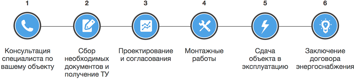 После принятия положительного решения, подразделение районной электрической сети (РЭС) обязано за 1 месяц разработать ТУ на подключение электричества к частному дому или участку, которые владельцу необходимо выполнить в срок до 2 лет. В технических условиях указывается какой тип кабеля или проводов необходимо использовать — для трех фаз или одной. Только при неукоснительном выполнении всех требований технических условий, возможно присоединение объекта к электрическим сетям. После выполнения всех пунктов ТУ, разрабатывается проект присоединения.