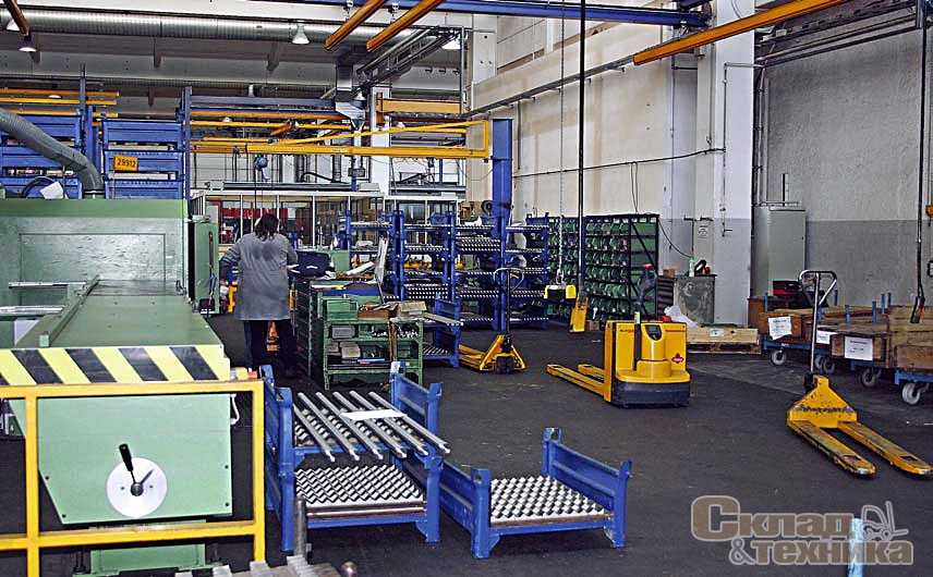 Самым простым складским оборудованием считается обычная складская тележка. Существует несколько вариаций такого оборудования. Его различают по трем главным характеристикам: грузоподъемность, назначение и особенность конструкции. Различные вариации таких характеристик создают многообразие конструкции складских тележек. Рассмотрим несколько видов тележек. Для перемещения грузов среднего размера на небольшие расстояния обычно используют двухколесные тележки. Объемные товары удобнее перевозить на четырехколесных тележках, если необходимо перевести партию товара, то для этого отлично подойдет многоярусная четырехколесная тележка. Ну а самым распространенным видом складской тележки является гидравлическая тележка. Она оборудована гидравлическим домкратом и вилами, которые позволяют быстро перемещать паллеты. Гидравлическая тележка может быть, как механической, так и самоходной(аккумуляторной). Тележки значительно ускоряют работу склада, но при всех своих преимуществах не могут заменить полноценный погрузчик.