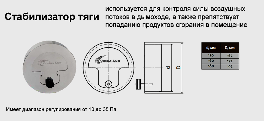 - Стабилизатор уменьшает перегрев дымоходного канала при розжиге печи, твердотопливного котла или камина, удлиняет срок службы дымоходов.