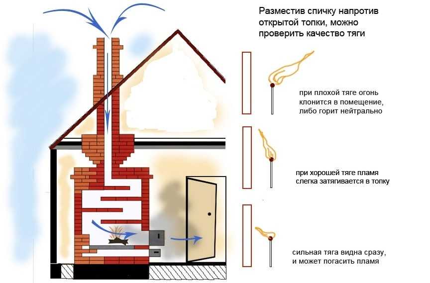 Спичкой. К обогревателю необходимо поднести зажженную спичку. Если пламя отклоняется в сторону печи, есть ток воздуха. Если он остается на одном уровне, вы можете быть уверены, что есть повышение, но среднего значения. Когда пламя отклоняется в сторону, противоположную печи, в дымоходе возникает обратная тяга.