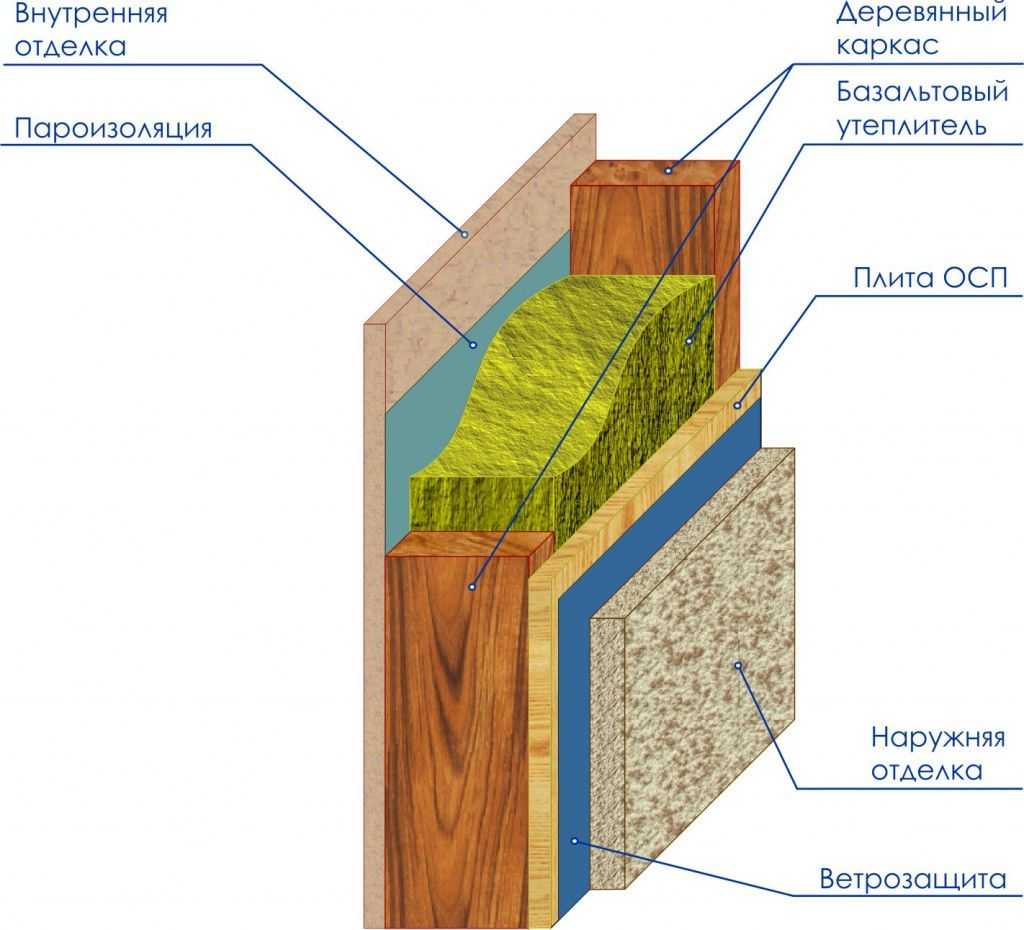 Из этого легко сделать вывод, что сам дом, его основание, монтируется из каркасных материалов. Они, в свою очередь, покрываются снаружи и внутри теплоизоляционными. Таким образом стены частного дома становятся достаточно устойчивыми к перепаду температуры на улице.