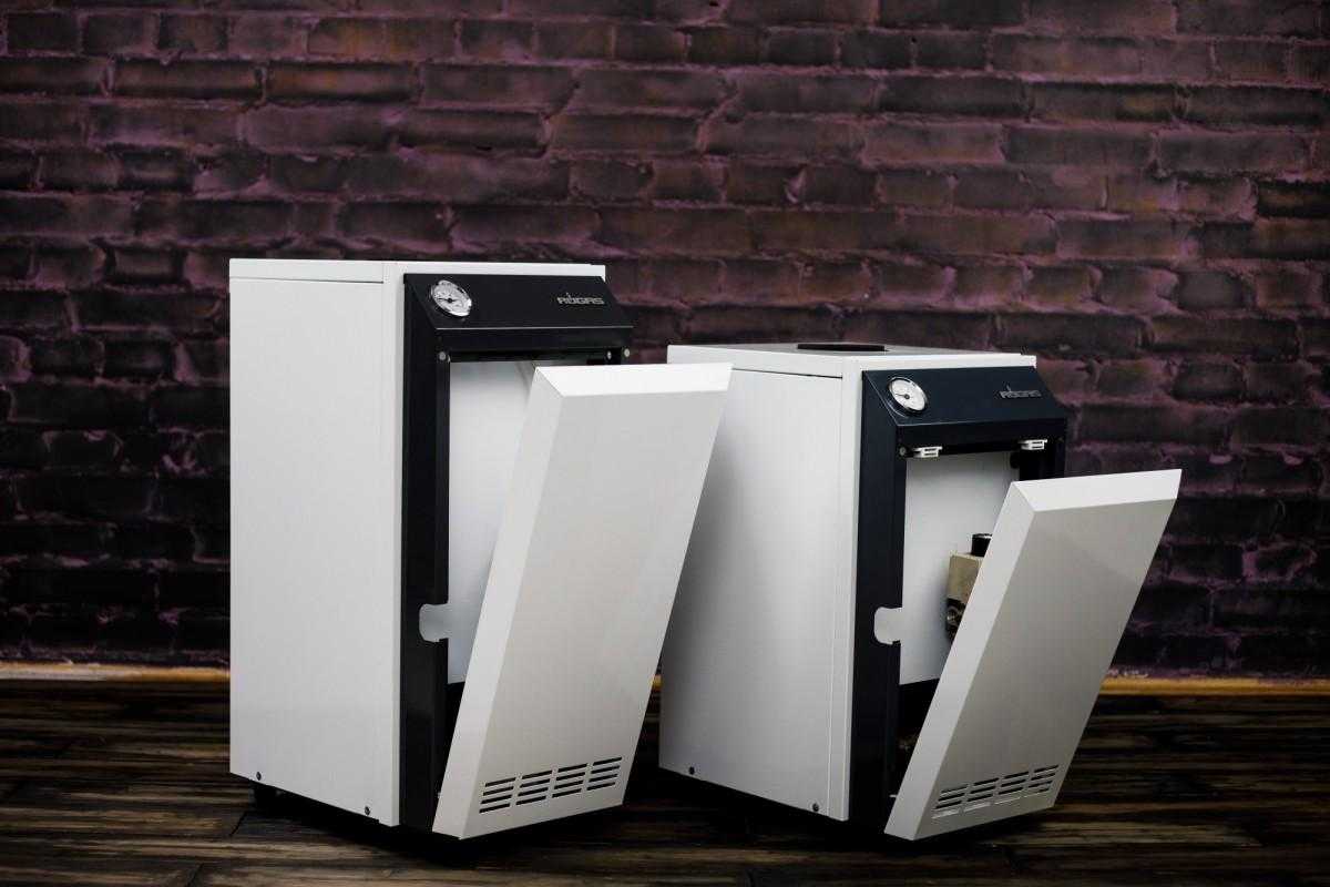 Котлы могут быть открытого или закрытого типа. Первый использует воздух непосредственно из помещения. В этом случае необходимо обустройство дымохода. Котлы с открытой или атмосферной камерой сгорания преимущественно устанавливаются в отдельных помещениях. Подобный вид используется в напольных установках мощностью более 35 кВт.