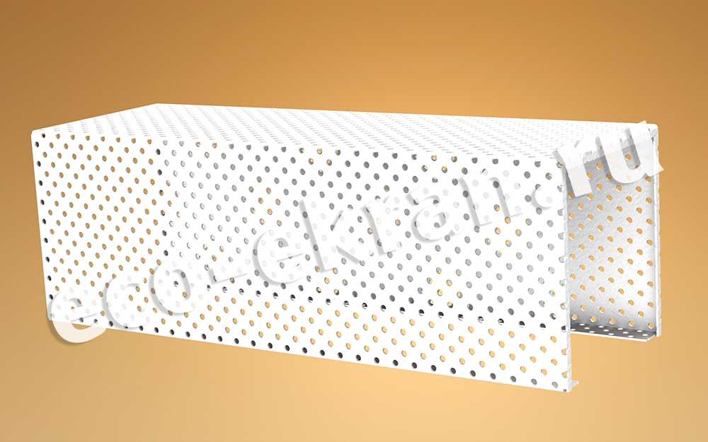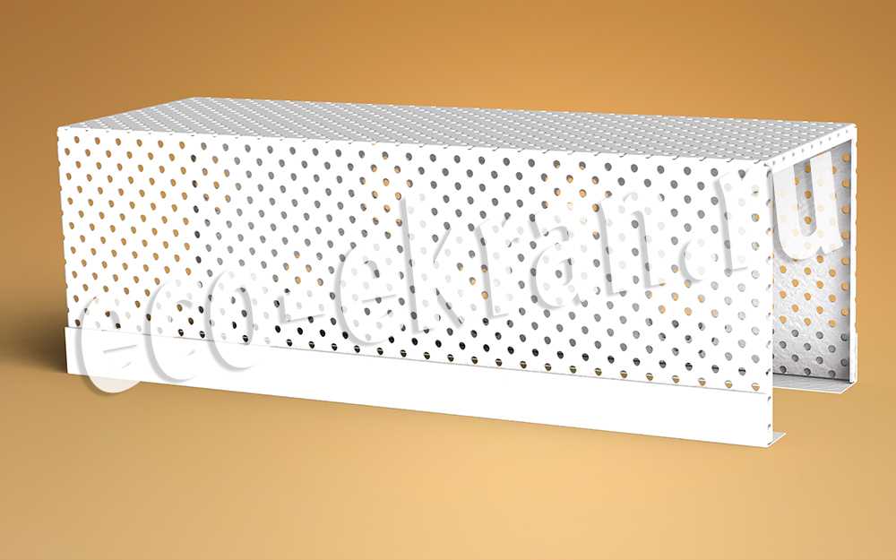 Металлический декоративный перфорированный короб – это хороший вариант декорирования труб отопления. Перфорированный короб для труб отопления изготавливается индивидуально, под заказ, по чертежам (эскизам) конкретно для каждого заказчика. Любого цвета по классификации RAL.. Базовым цветом является — белый. Короб для труб отопления делается как целиком из перфорированного металла, так и из комбинированного металла, то есть одна часть короба изготавливается из глухого металла, а другая часть делается из перфорированного металла любой перфорации.