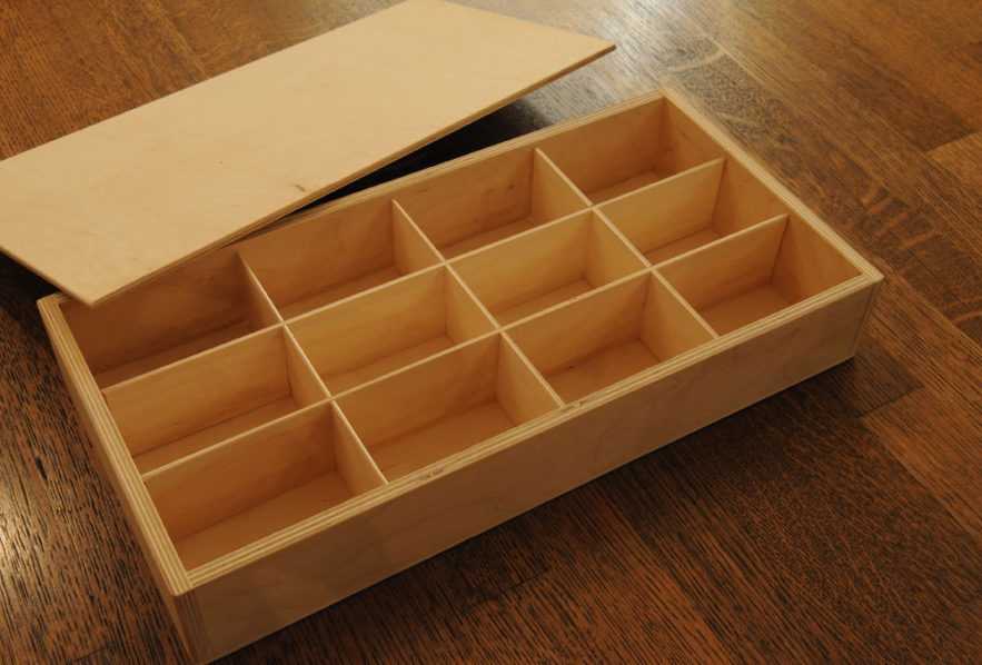 Для начала стоит сделать чертеж на бумаге, чтобы при изготовлении не допустить ошибок. Обязательно проверьте, правильно ли вы подобрали размеры ящика. Когда чертеж готов, его нужно перенести на лист фанеры. Для стенок ящика используйте лист толщиной 8-10 мм, а для дна стоит взять фанеру потолще, около 18 мм. Изначально планируйте стыки в системе пазов. Тогда конструкция ящика будет прочнее.