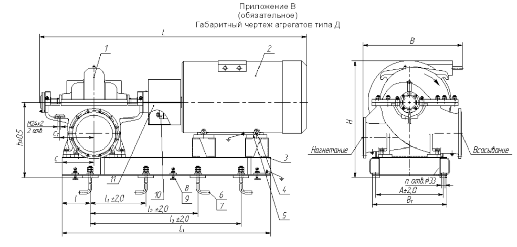 Габаритный чертеж агрегата 1Д200-90б