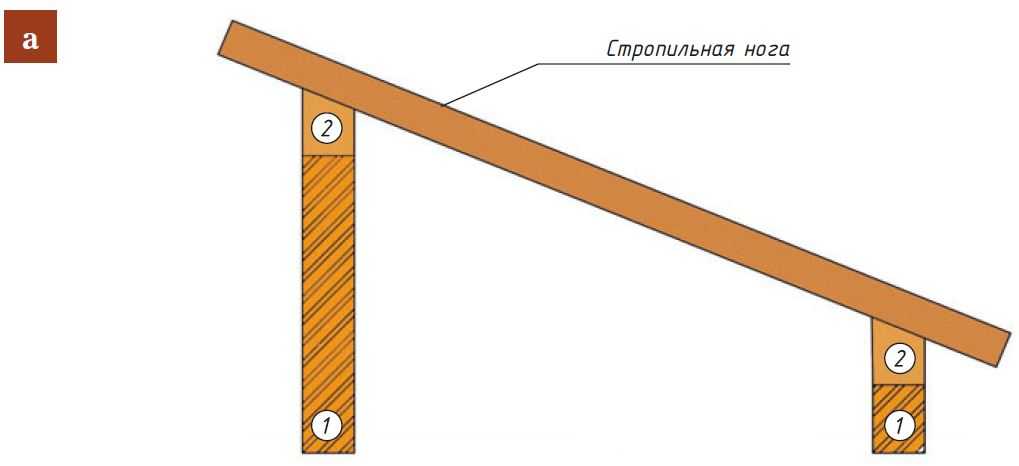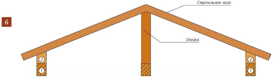 Наслонные стропила выпол няются из отдельных элементов — стропильных балок, или ног, и устанавливаются в зданиях со средней несущей стеной или столбчатыми про межуточными опорами.