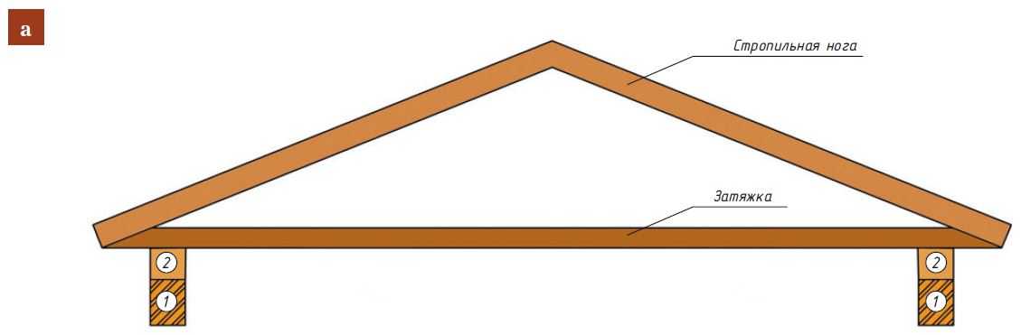Для системы с висячими стропилами ферма собирается на земле. Она состоит из треугольника стропильных ног и затяжки со всеми стойками и подкосами. Сначала понадобится составить чертеж, высчитав угол соединения и длину стропил. Обычно угол наклона крыши 35−40 градусов. Однако на сильно продуваемых, открытых участках его делают меньше — 15−20 градусов. Чтобы определить угол соединения стропил, надо умножить на 2 угол наклона крыши.