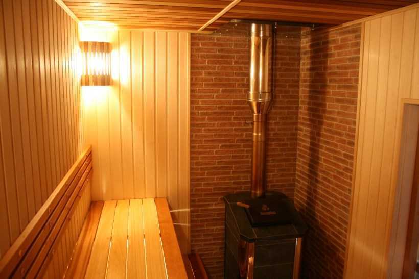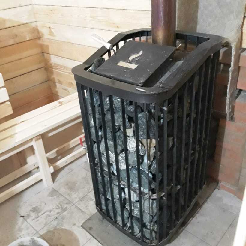 Порадует еще эта модель безопасностью. Дымоход расположен далеко от стенки парилки. При этом обязательно нужно прочищать трубу, чтобы не возникало застоя и задымления.