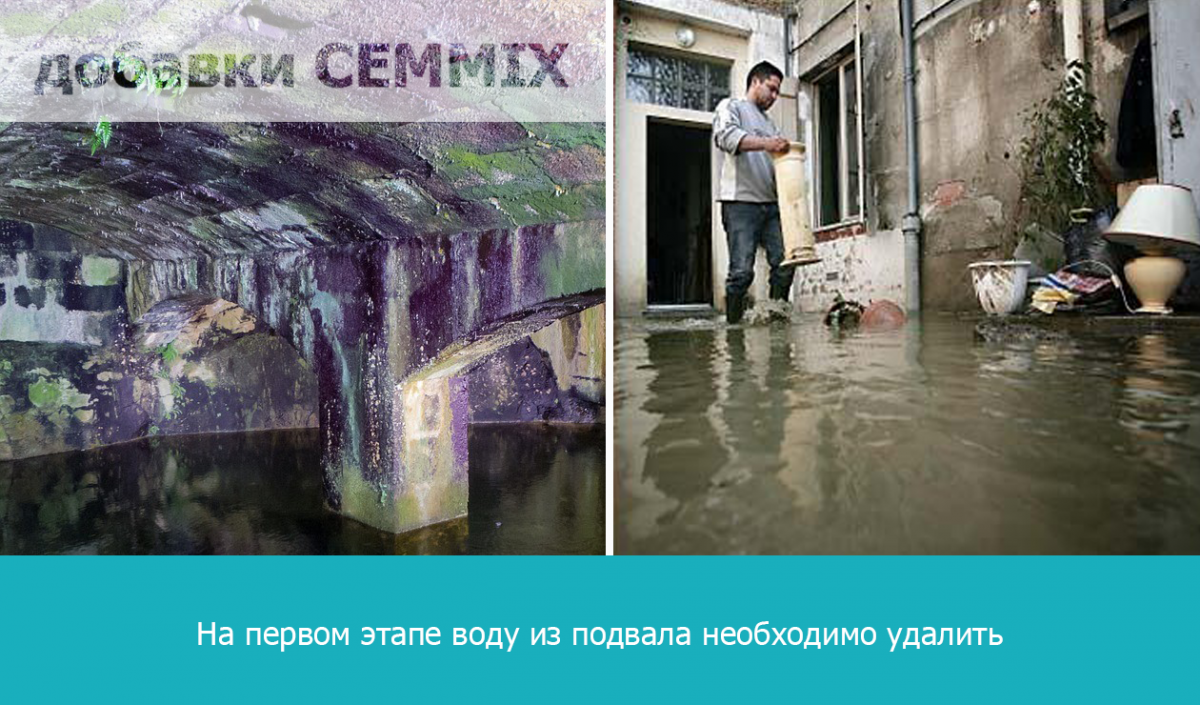 Если подвал затоплен водой, то на первом этапе воду удаляют, вычерпывая вручную или откачивая с помощью насоса.