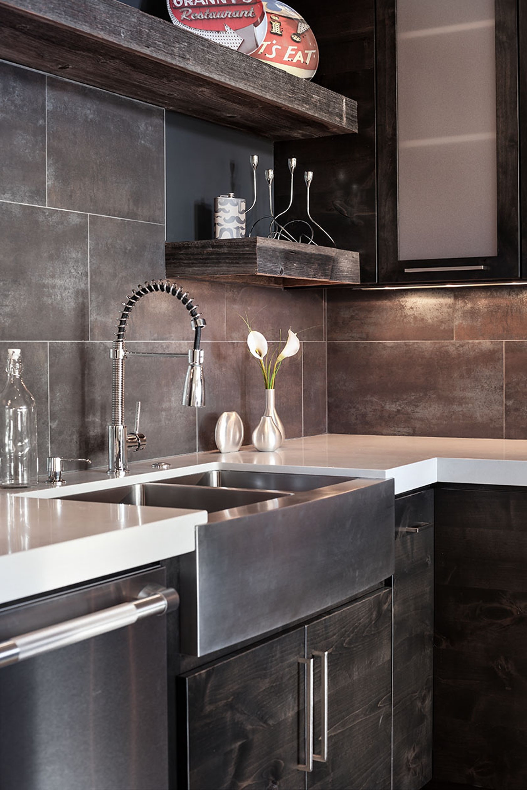 Важен также способ монтажа раковины. Для модульной мебели идеально подходят накладные мойки, отличающиеся простотой в установке. При обустройстве кухни в эксклюзивном дизайне можно выбрать встраиваемую модель, которая монтируется на одном уровне со столешницей — поручить такую работу следует профессиональному мастеру.