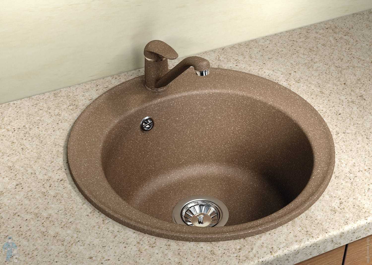 Круглые. Раковины с одной чашей диаметром от 45 до 51 см, имеющие максимальный внутренний объём. Лучше всего подходят для малогабаритных кухонек.