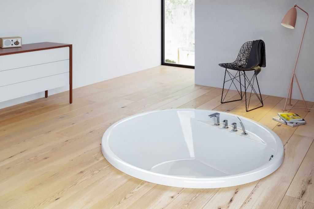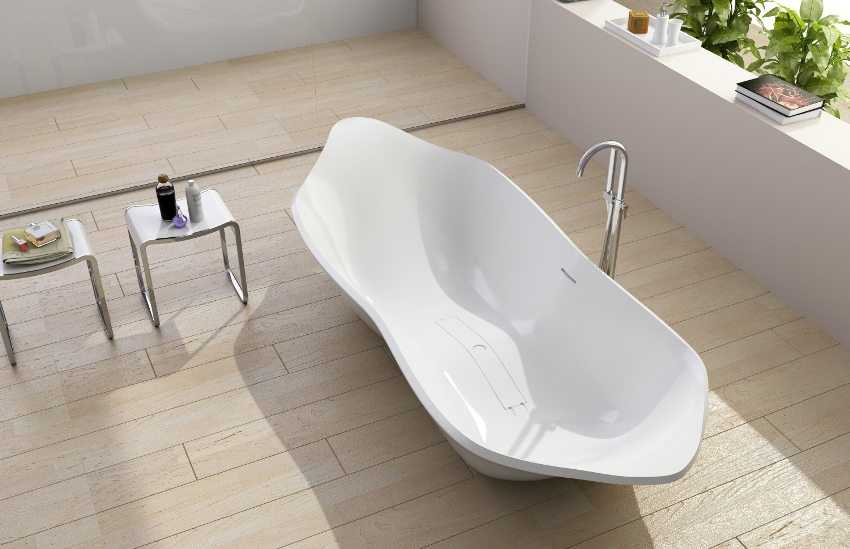 Для отдельно стоящей чаши потребуется большое помещение, в котором предварительно подготовили пол под ее установку. Чаще всего вес и габариты конструкции предполагают наличие надежных перекрытий, способных выдержать нагрузку. Более подробно о установке акриловых ванн можно прочесть в этом материале.