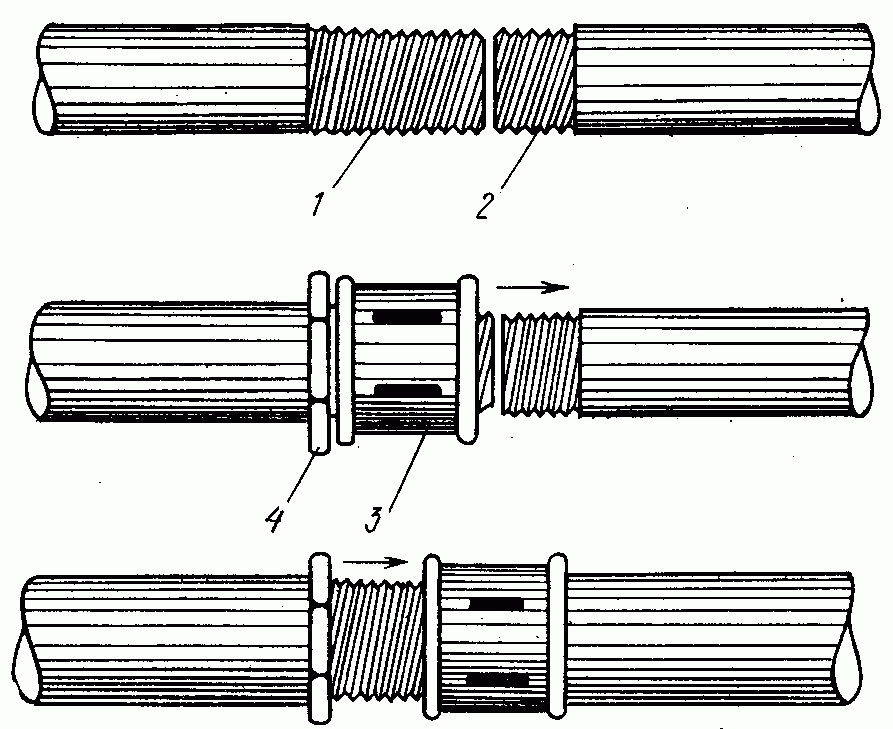 - на конец сгона с длинной резьбой устанавливается контргайка, а затем накручивается соединительная муфта;