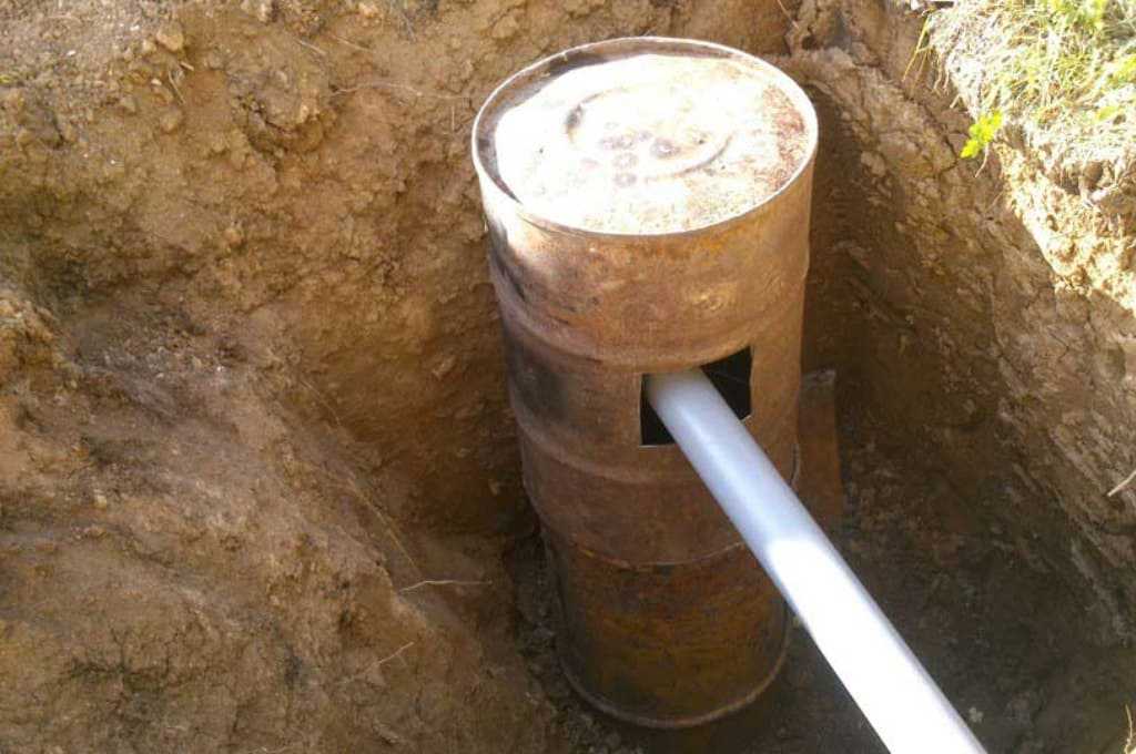 Если используются бочки, особенно металлические, то дренажная подушка должна быть изготовлена из гравия. В противном случае ёмкость под весом вдавится в неплотное основание грунта.