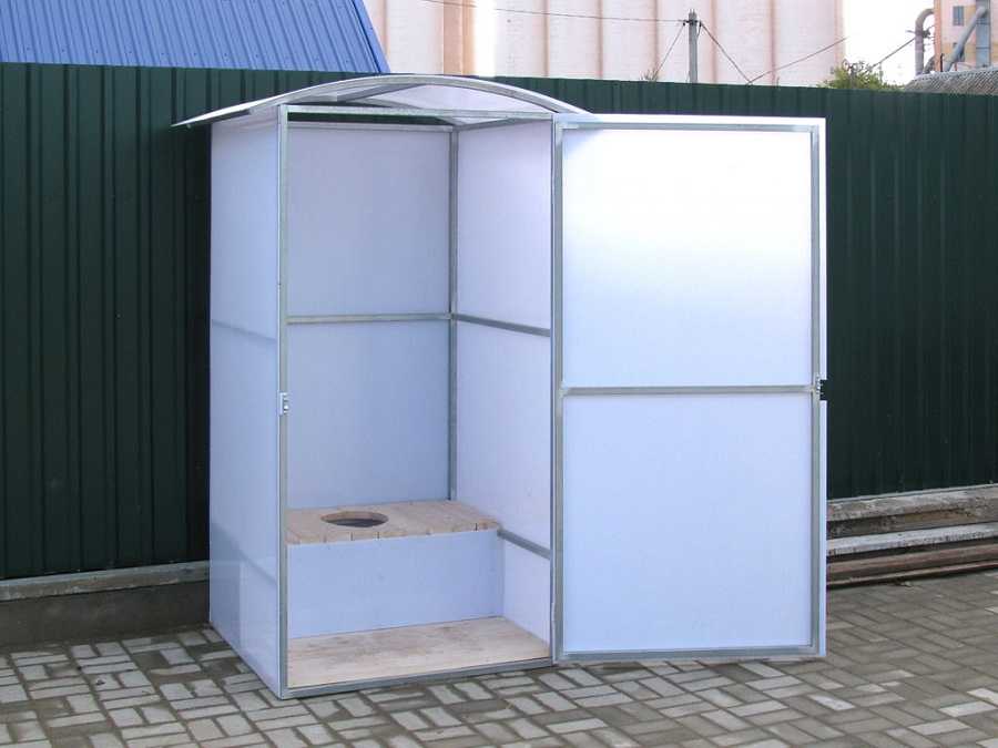Здесь доступно два варианта. Это могут быть как обычные био-туалеты, которые вы в готовом виде можете приобрести в строительных магазинах, так и постройки из пластиковых панелей. В последнее время они стали очень популярными.