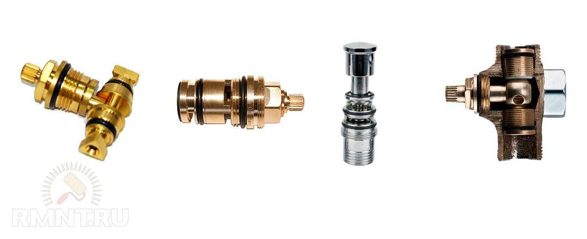 - кран-буксы. Они регулируют подачу воды. Старые модели оснащаются резиновыми прокладками, а новые имеют керамические пластины.