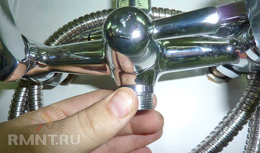 1. Руками откручиваем душевой шланг.