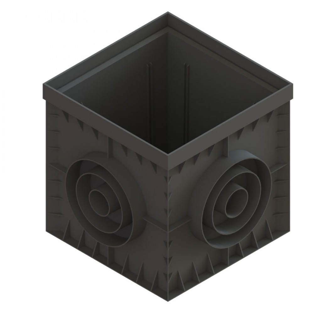 Такой дождеприемник может быть довольно больших размеров, это подойдет для самых высоких нагрузок и обеспечит надежность ливневой канализации.