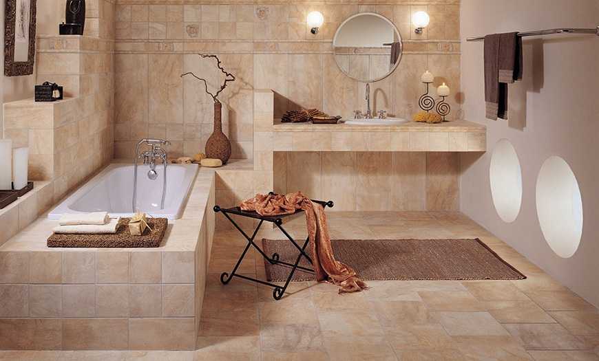 Плитка внутри может несколько отличаться от основной, но лучше, если они совпадают по стилю.