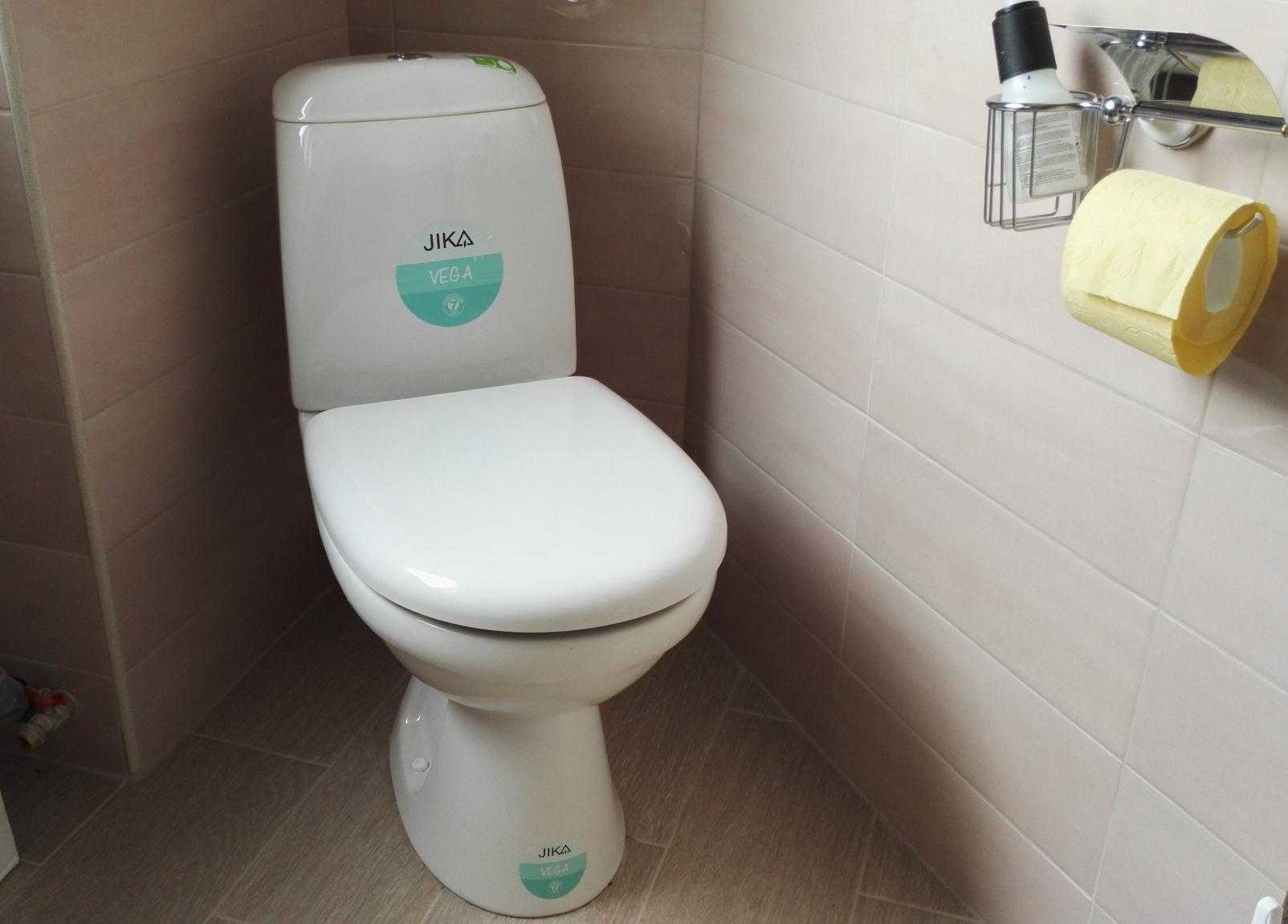 Напольный унитаз Jika Vega можно приставить вплотную к стене. Помимо небольших габаритов, изделие укомплектовано: